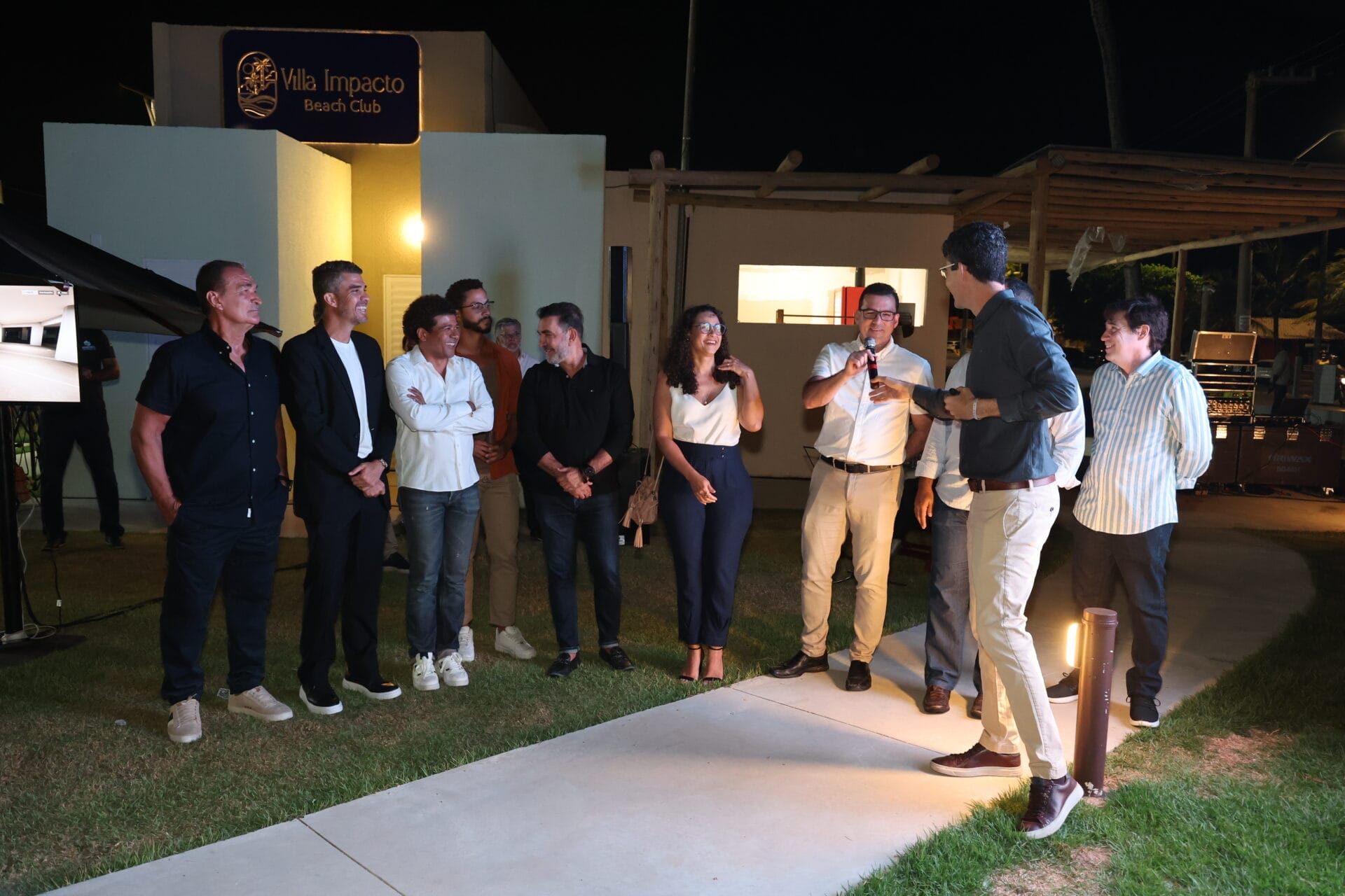 A apresentação do stand de vendas na Villa Impacto reuniu os profissionais que idealizaram o Palazzo Silvia Fonseca Diniz, incluindo Henrique Cortês, Marcus Cortês e Daniel Cortês. Além disso, a equipe de idealização, composta por Expedito Júnior, Wesley Lemos, Lainy Lemos, Paulo Bedeu e Mário Britto, também participou, celebrando o projeto colaborativo que resultou em uma proposta única de moradia.